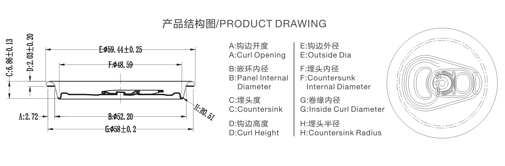 | 鉤邊外徑(mm) | 59.44±0.25 |