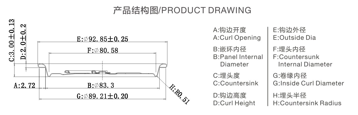 | 鉤邊外徑(mm) | 92.85±0.15 |